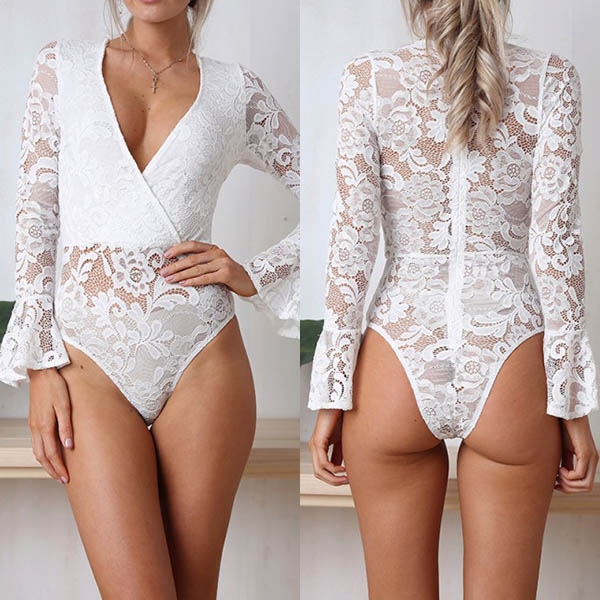 ump right into sexy and chic style wearing this slim fit lace bodysuit! This bodysuit draft from the lace fabric,