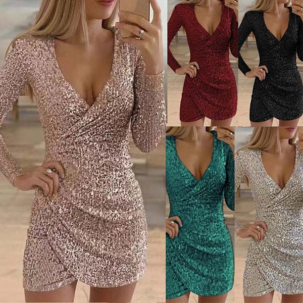 Paljettdesignen gör att den ser så glänsande och attraktiv ut. Avslutad med lång ärm, djup v-ringning och