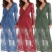 long sleeve dress. The deep v-neck design can enhance your feminine appeal,and the embroidered