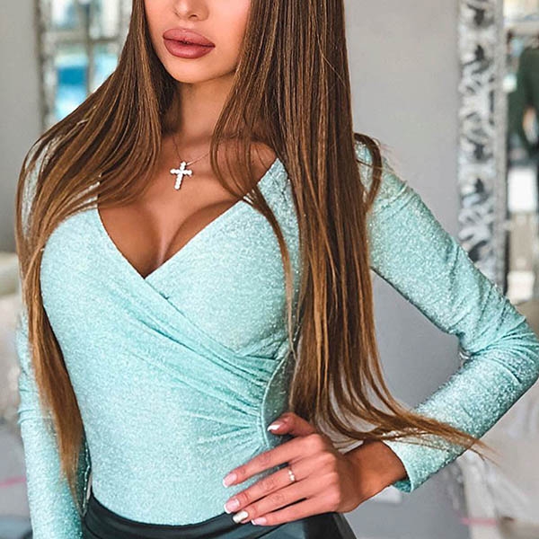 deep v-neck design will offer you a sexier look. Try to match with your high waist bottoms like shorts or