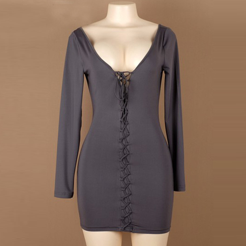 style with a little help from this elegant tight dress. Its deep v-neckline,super fit silhouette and lace-up