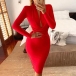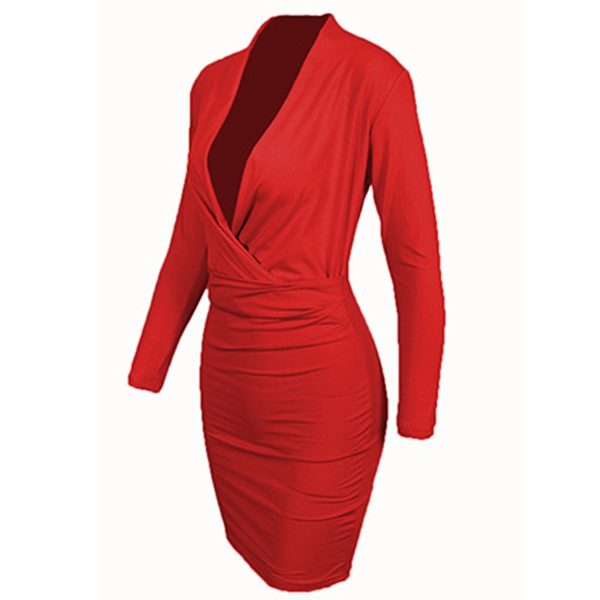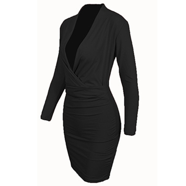 You can look exceptionally stunning when you slip into this long sleeve dress. The deep v-neck