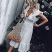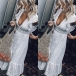 Sexy Deep V-neck Lotus Sleeve High Waist Hollow Out Dress