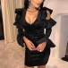 will offer you a more eye-catching look,while the off-shoulder,deep v-neck and ruffle design will enhance