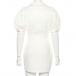 Create a sassy look with the flirty details of this dress. Comes with a classic yet stylish white tone,