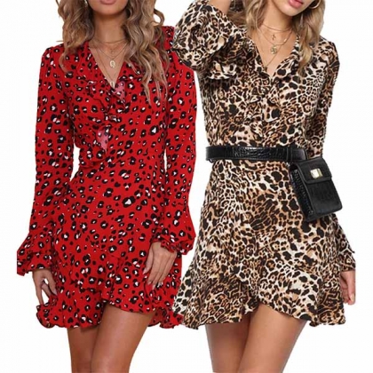 The leopard print design makes this piece look so charming and eye-catching,while the v-neck and ruffle