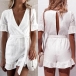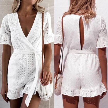 Embrace the warmth of a sunny weekend with a delightfully piece such as this romper! The deep v-neck