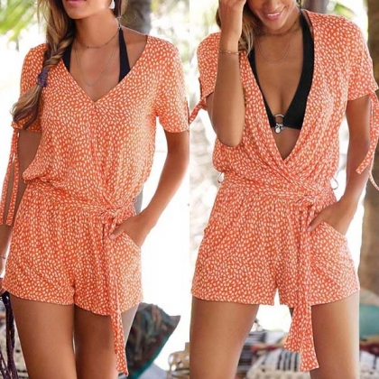 and eye-catching printed details,with short sleeve and v-neck design,this romper hows how to give