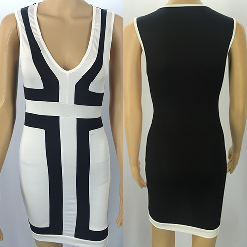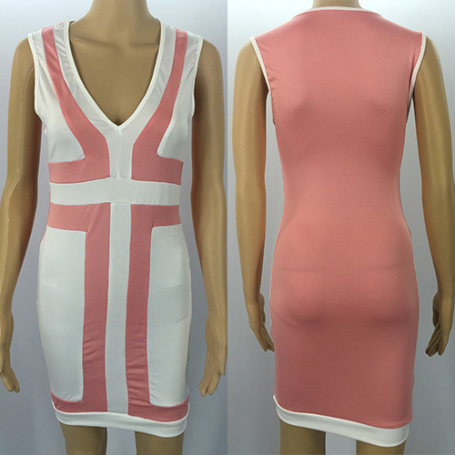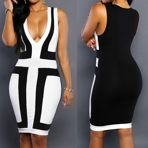 bodycon dress! Contrast color style,designed with sleeveless,deep v-neckline and a super fit