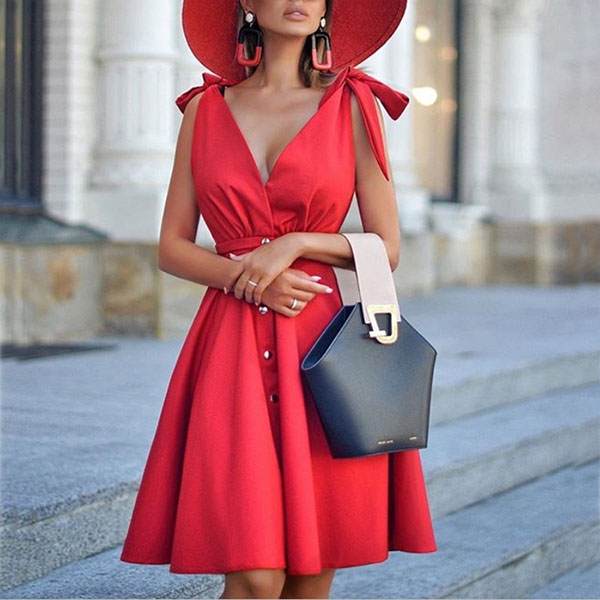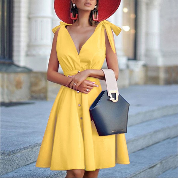Create a sassy look with the flirty details of this dress. Comes with a solid color,the deep v-neck
