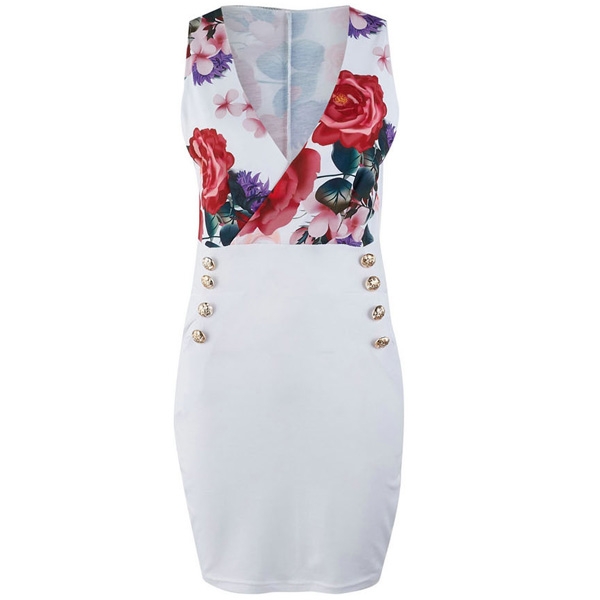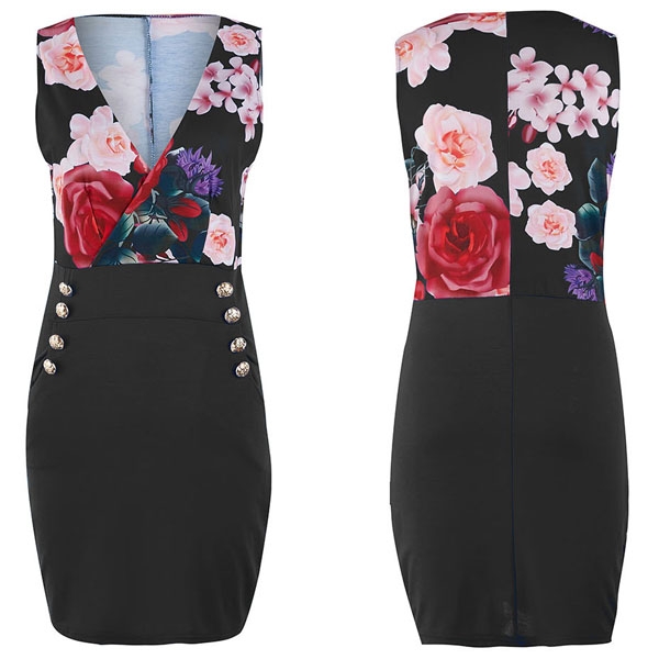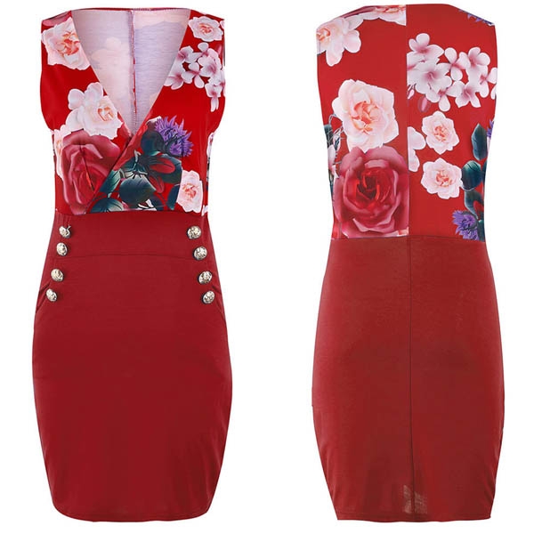 Sexy Deep V-neck Sleeveless Slim Fit Printed Dress