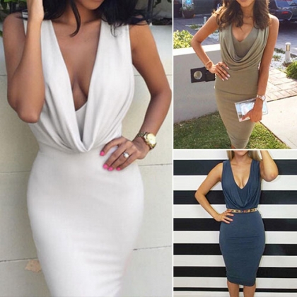 No one can resist your temptation once you wear this sheath dress. Solid color style,its deep v-neckline