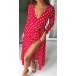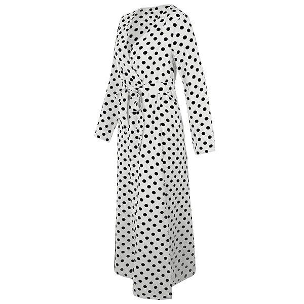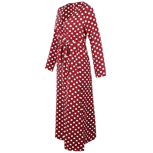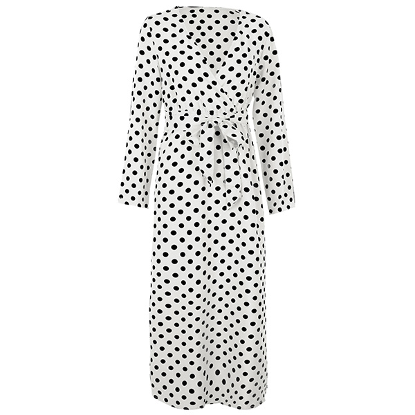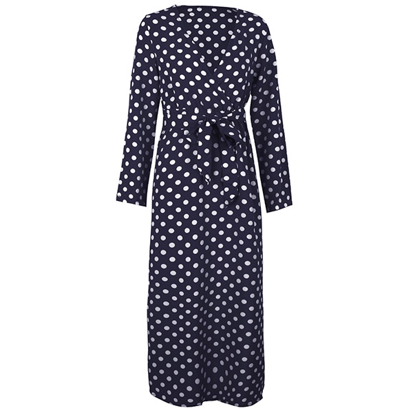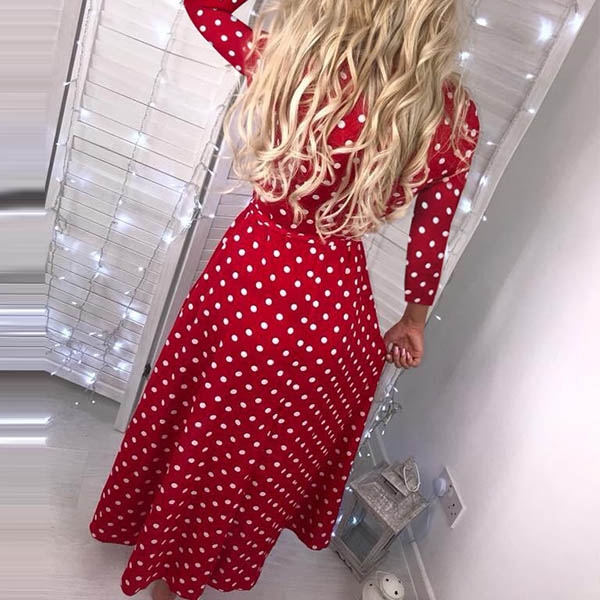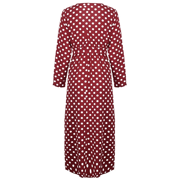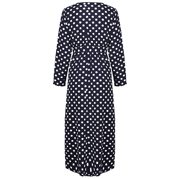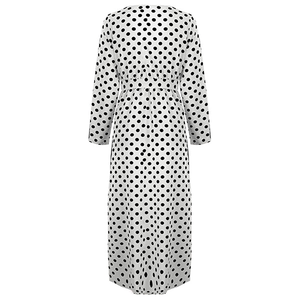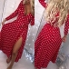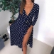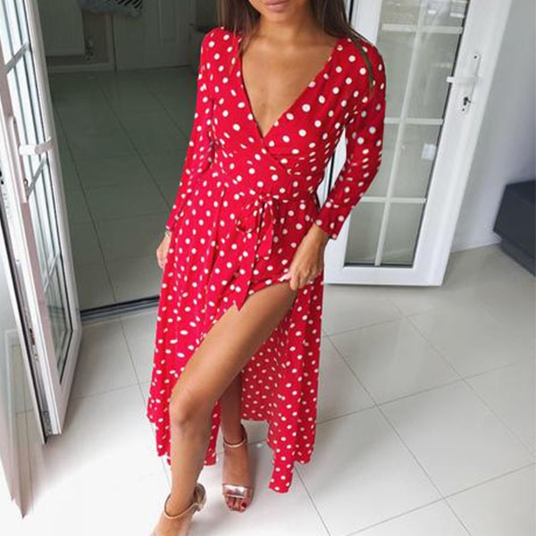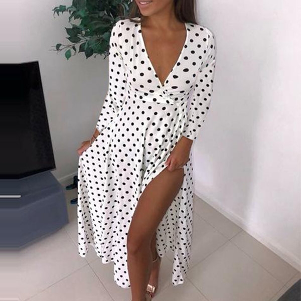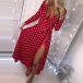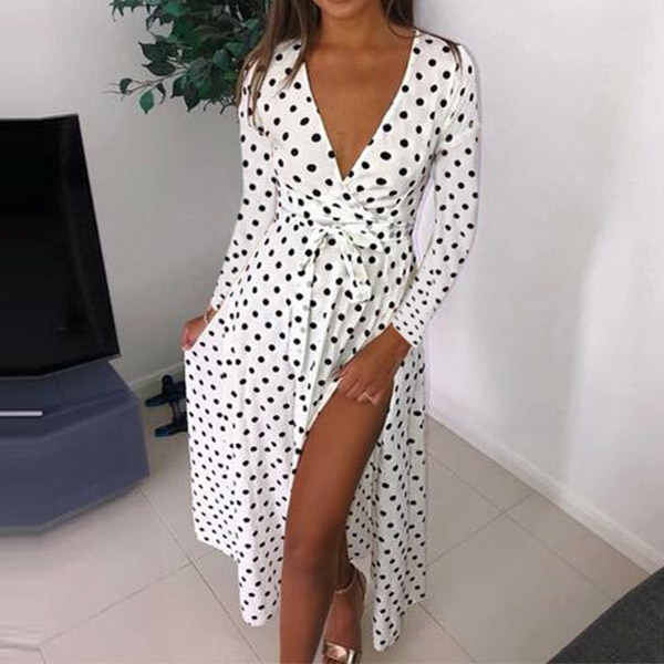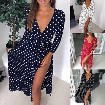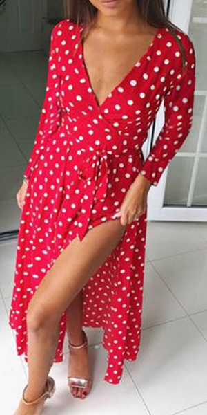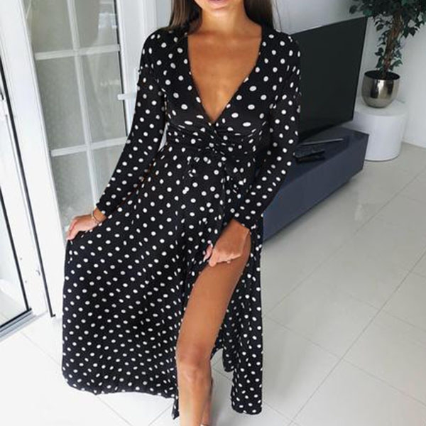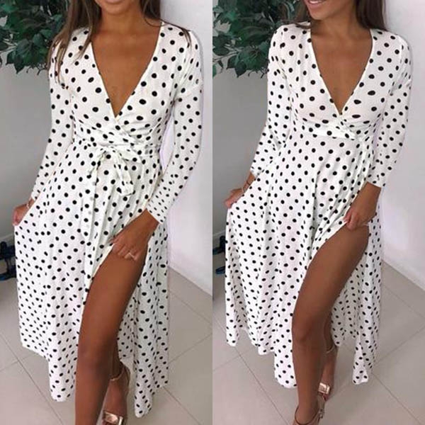 Sexy Deep V-neck Slit Hem Long Sleeve Dots Printed Dress