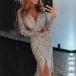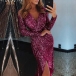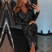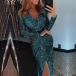 Sequin design makes it look so eye-catching and charming,while the deep v-neck and slit hem design