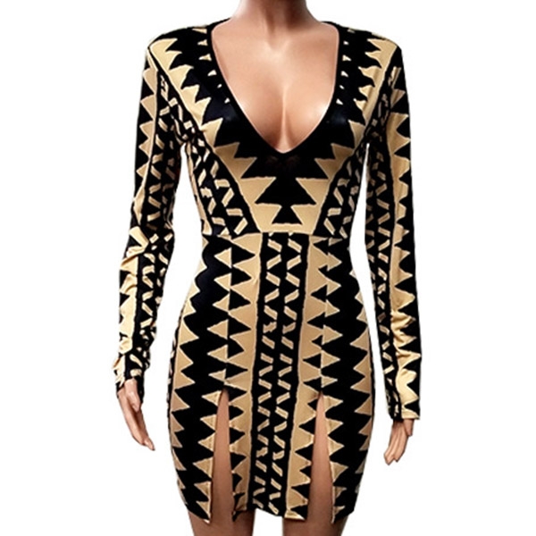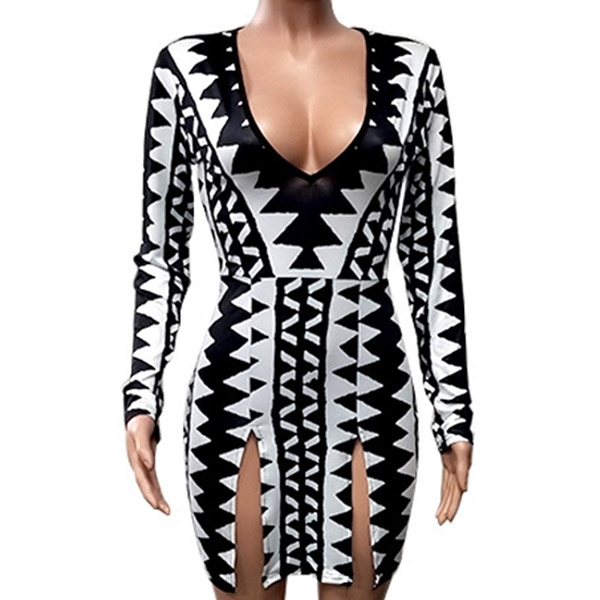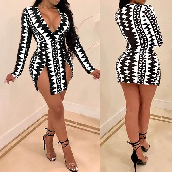 Features chic and eye-catching printed pattern,the deep v-neck and slit hem design can give you a sultry look,