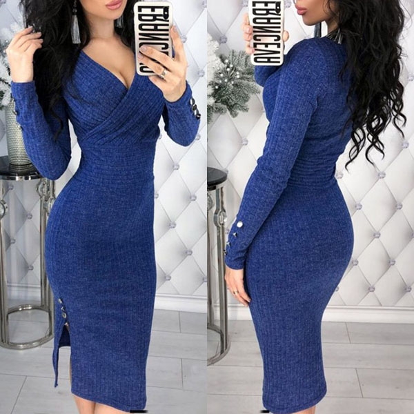 that's why we suggest you this dress. Comes with a solid color,the deep v-neck and slit hem