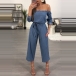 denim fabric, feature with an elastic off-the-shoulder neckline for showing your charming shoulder,