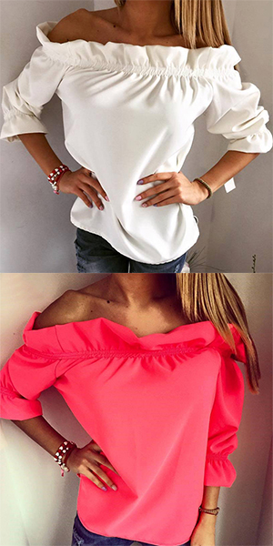 At your firts sight,you would be attracted by this tops. It features solid color style,its slash neck