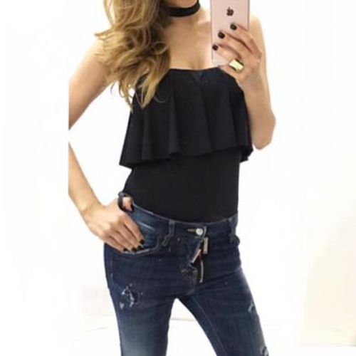 Strapless style,with a solid color and a sweet flouncing design,sexy and charming.