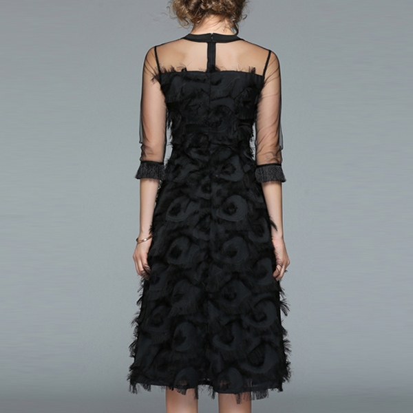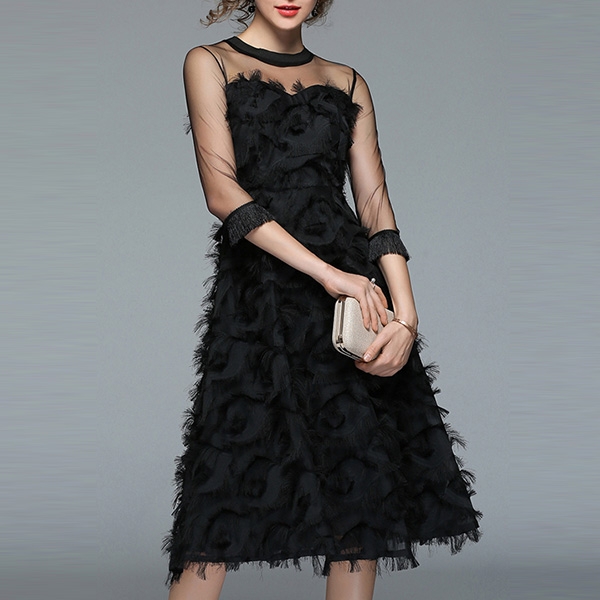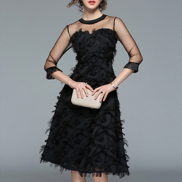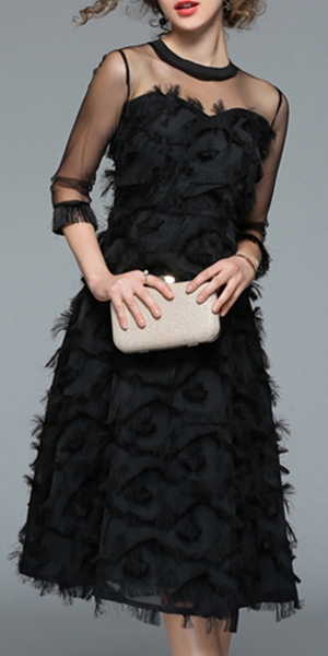 No matter when and where you go,you can easily be the focus in this stunning dress! The see-through gauze spliced design can offer you an alluring look,