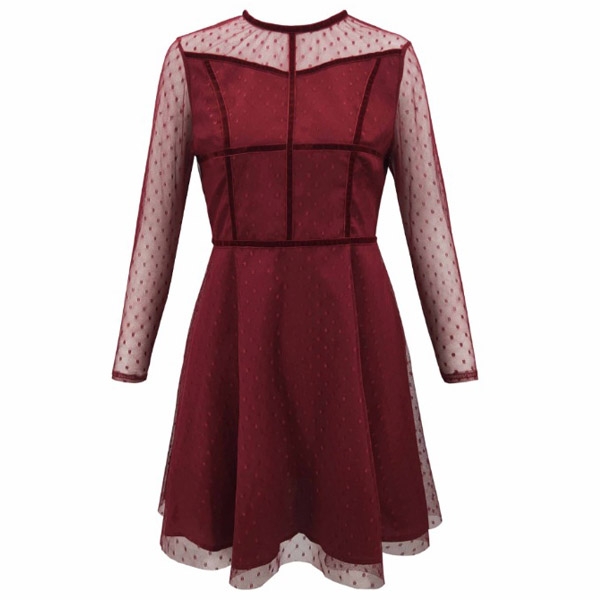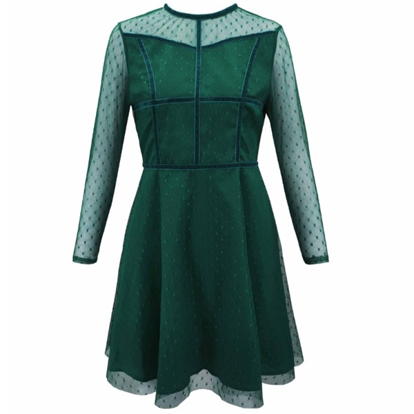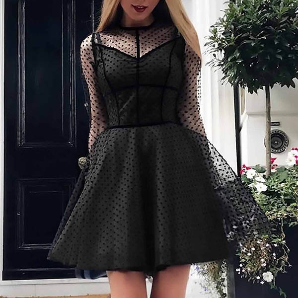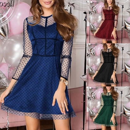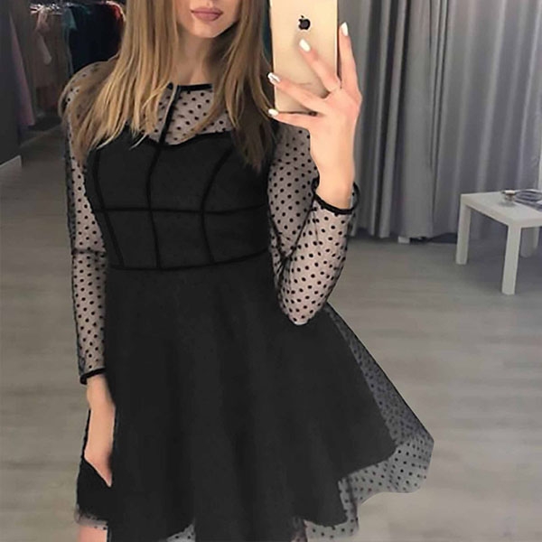 you have this dress in your team. The gauze spliced and dots details make this piece look so sexy and flirty.