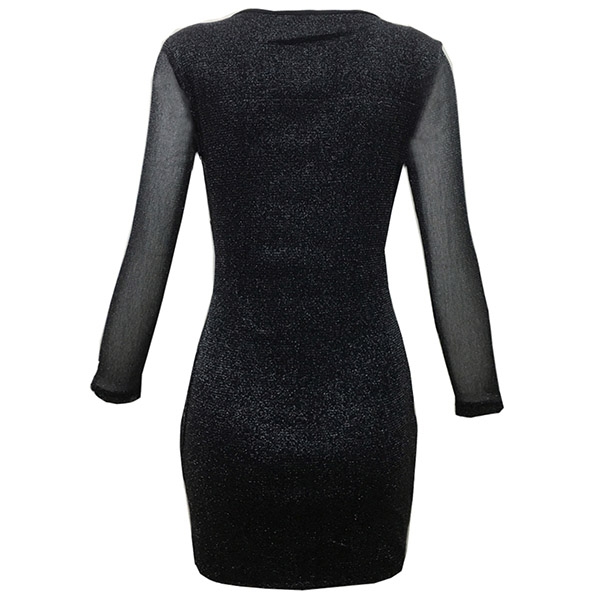 Sexy Gauze Spliced Long Sleeve V-neck Mini Slim Fit Dress(It falls small)