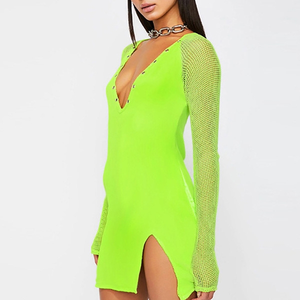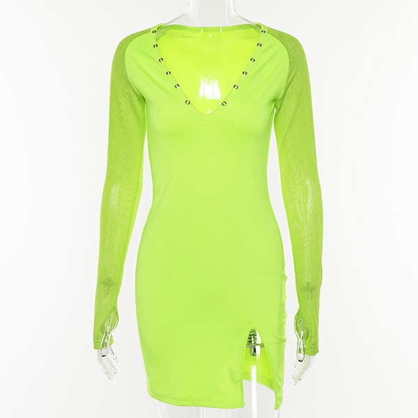 details like deep v-neck,slit hem and gauze spliced design will give you a sultry look. No matter when and