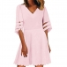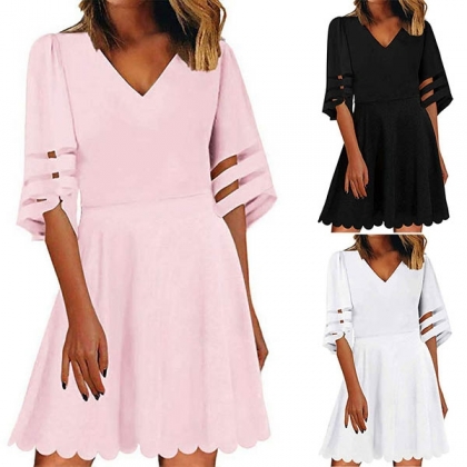 on this dress. It comes with a solid color,the gauze spliced trumpet sleeve and v-neck design can