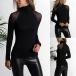 Black t-shirt is always be more popular,this one is a good example. The gauze spliced design around
