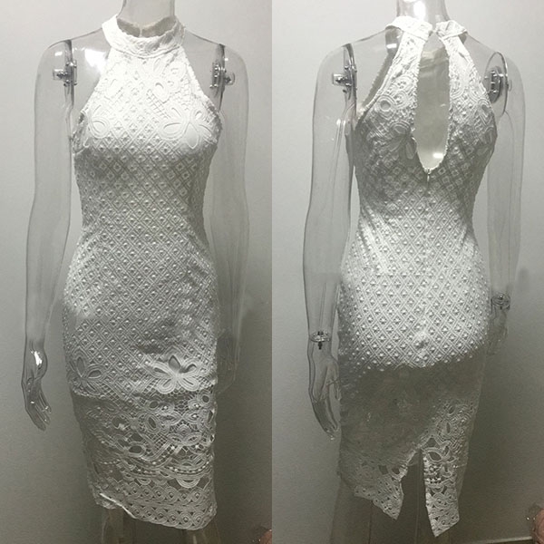 Enjoy the effortlessly beautiful look of this sleeveless lace dress! Rendered in a body-con silhouette with