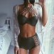 Solid color style,including a crossover halter bra and a high waist hollow out briefs,this bikini set