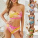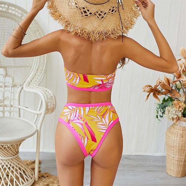 Including a bandeau bikini top and a high waist bikini bottom,this bikini set also can showcase