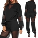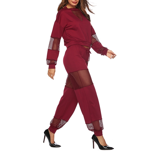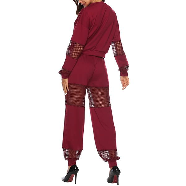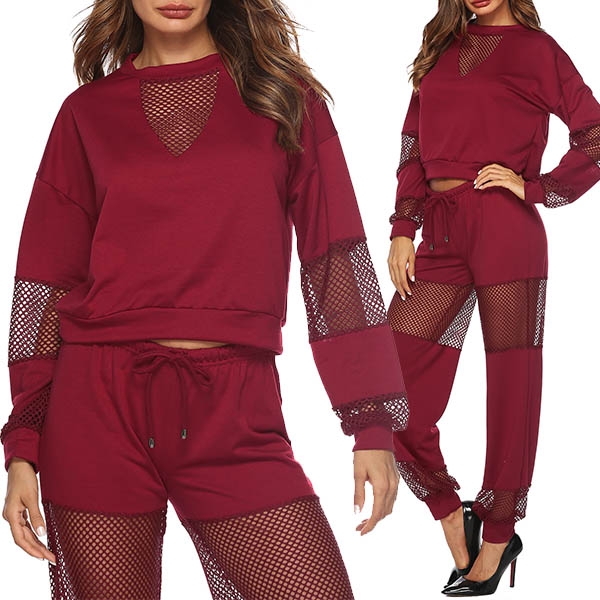 sleeve round neck sweatshirt and a pants,the hollow out gauze spliced design make it look so sexy,