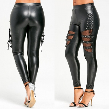 Du kan enkelt vinna fler ögon när du bär dessa PU-läderbyxor. Den ihåliga gasväven skarvad och