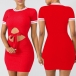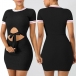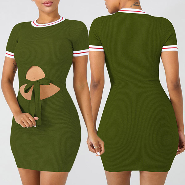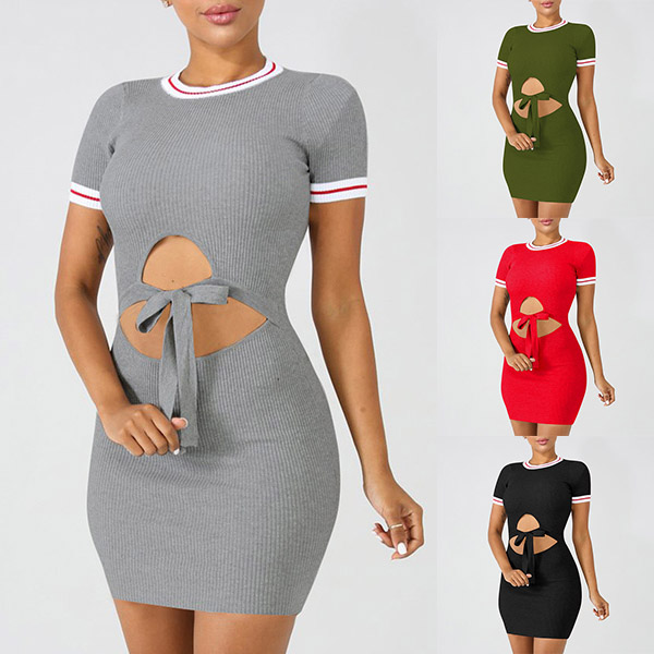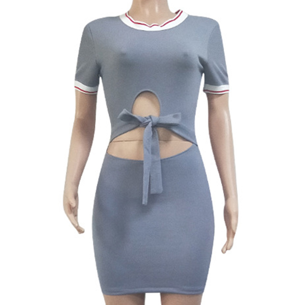 round neck and a tight silhouette,the hollow out design at waist part makes this piece look so sexy.