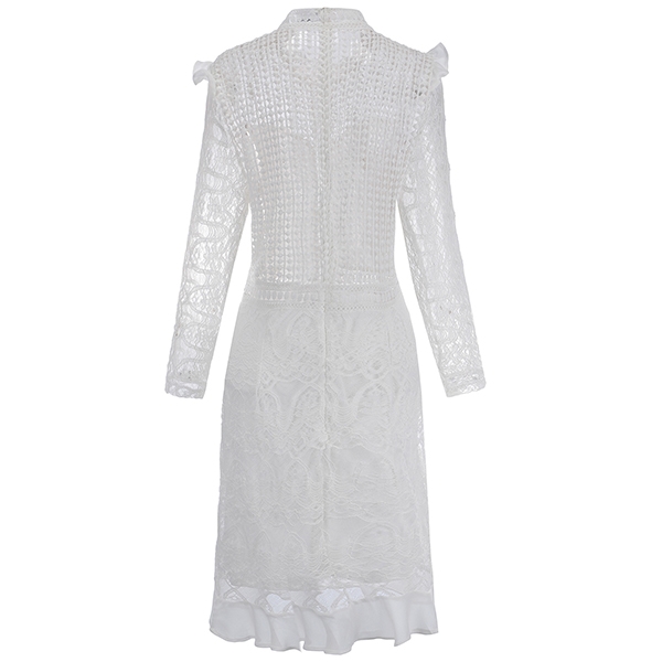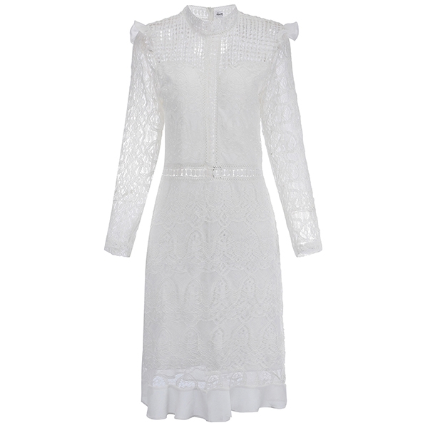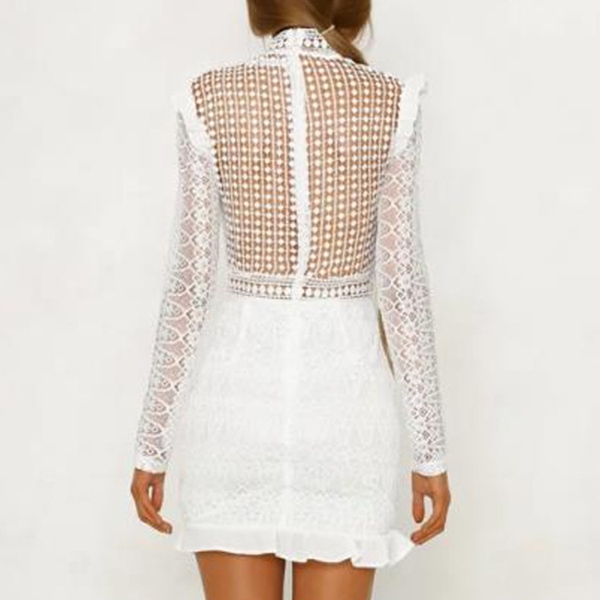 mock neck and a fit silhouette,this dress can accentuate your seductive curve,while the hollow out lace spliced