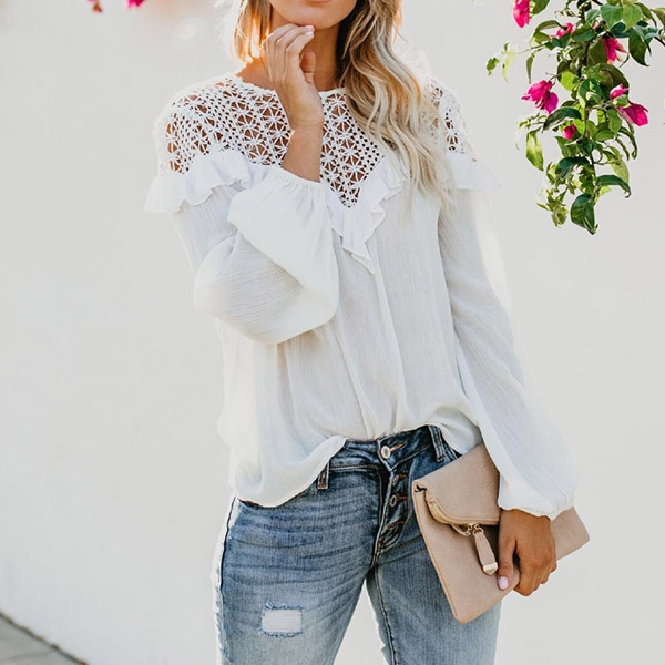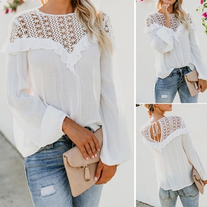 The hollow out lace spliced and ruffle details make this piece look so charming,while the soft and