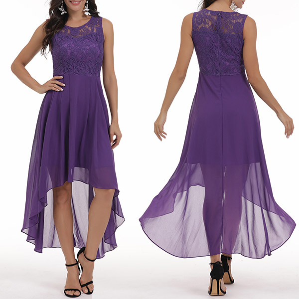 När du har den här klänningen i ditt team behöver du aldrig oroa dig för vad du ska ha på dig till din middagsträff och helgmöten. Design i enfärgad ton kan ge dig en gnutta elegant atmosfär, medan de ihåliga spetsade detaljerna och designen med högt låg fåll gör den här delen mer attraktiv. Du kan skildra din eleganta och charmiga bild med denna delikata klänning.
