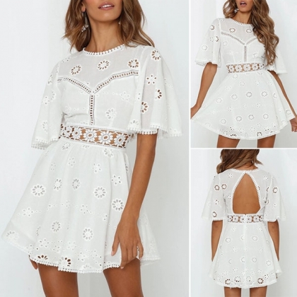 your summer wardrobe. The trumpet sleeve and hollow out lace spliced design are the highlights,