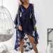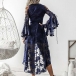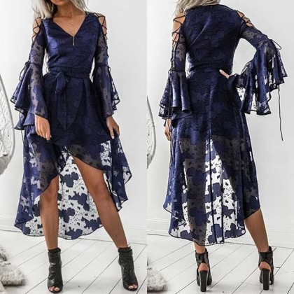 Its alluring design details like trumpet sleeve,high-low hem,v-neck and hollow out lace-up design