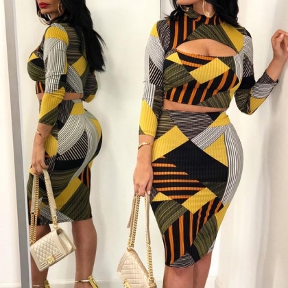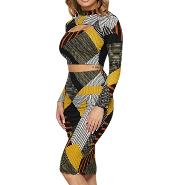 design makes it look so eye-catching. Including a long sleeve crop top and a high waist skirt,this