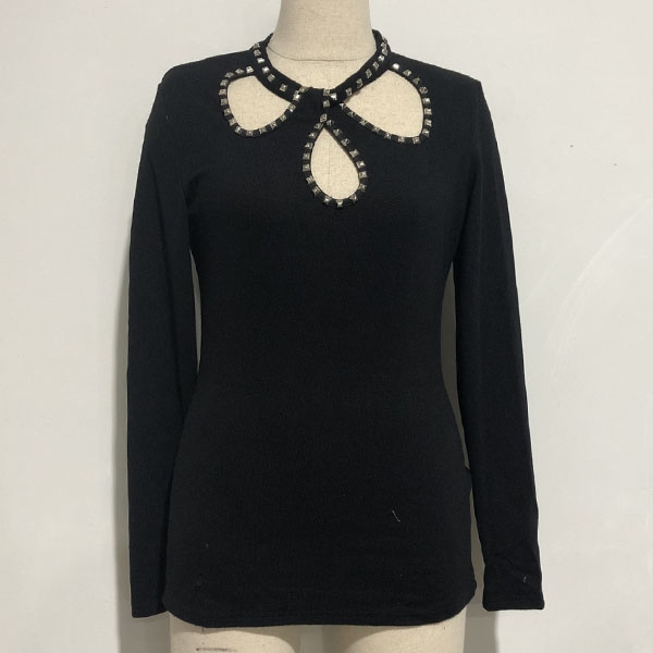classic yet flattering black tone,the hollow out and rivets details are the highlights,which make