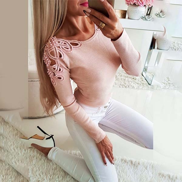 When it comes to a cozy yet feminine style,you can totally trust in this t-shirt. The hollow out design