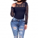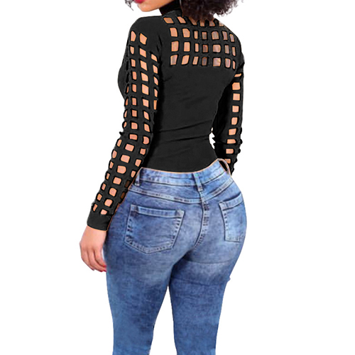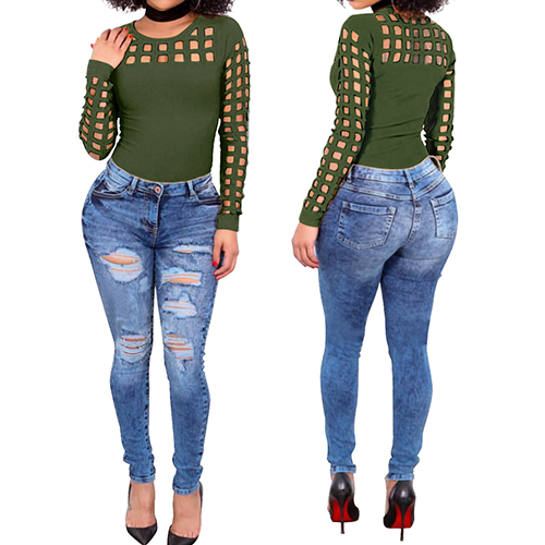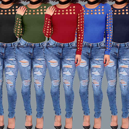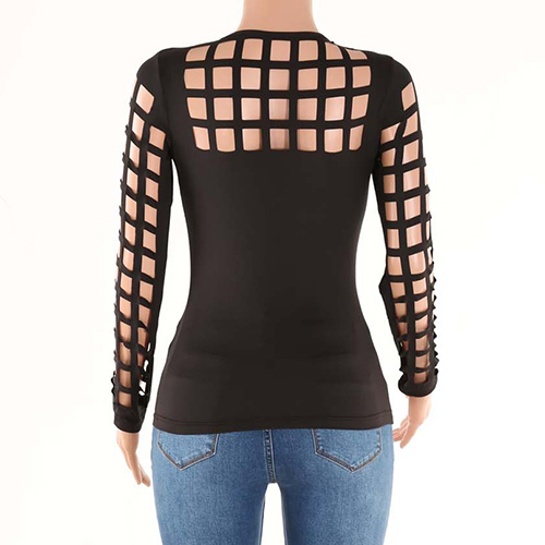 Slip into this t-shirt for a charming look. Solid color style,its hollow out details make this piece