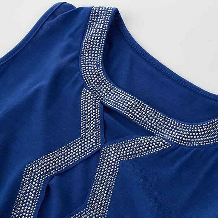 while the hollow out and rhinestone details make this dress look more eye-catching and shinning.