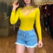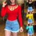You can easily upgrade your style with the help of this t-shirt. It boasts a solid color,the hollow out