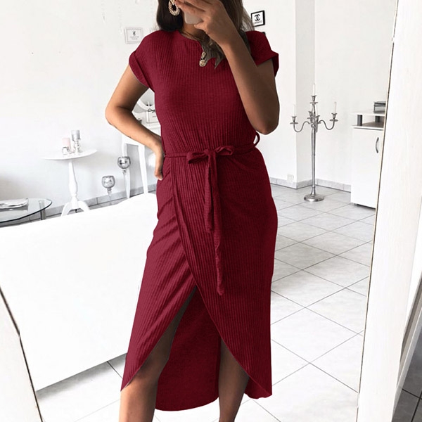 It is a good chance to enrich your wardrobe with this dress. It comes with a solid color,