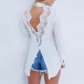 The lace spliced,slit hem and backless design make this piece look so attractive. Finished with long
