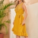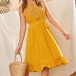 This sleeveless dress is the perfect addition to these warm-weather days. Solid color style,the backless and hollow out lace spliced design will lend you a dash of sexy and flirty vibes.
