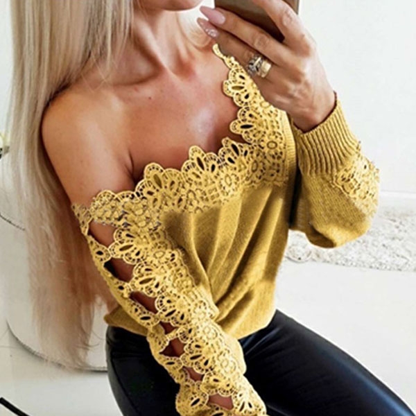 a full display in this wonderful top. Moreover,the lace spliced details will further enhance its
